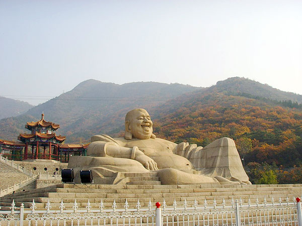 Located at the east side of Ming Tombs Reservoir of Changping District, 40 km away from Beijing. Mangshan National Forest Park has the largest area in Beijing area. Mangshan park has four rare features: firstly, there are 176 species of trees on the mountain with 86% forest coverage. In spring, flowers in mountain are in blossom, in fall the smoke tree leaves are in red. The sceneries are gorgeous. Secondly, the biggest stone-carved Buddha in north China lies here, smiling to welcome visitors. Twelve Earthly Branches are remarkably true to life around the Buddha. Thirdly, there are the longest climbing steps in Beijing which are paved from 3,666 rags. Fourthly, there is the highest Ming Tower in the style o f the ancients and colored drawing corridor at the top of the mountain. You may view the scenery of water and mountain. Elegant Beijing courtyard with building on four sides and field tent in the park are provided to visitors for relax and vacation.