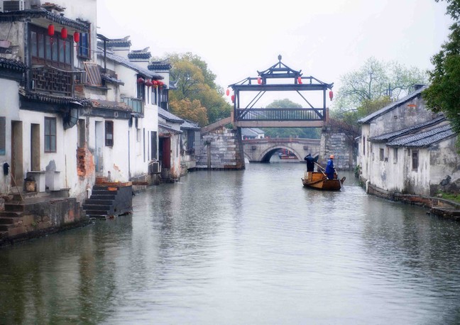 Located south of Suzhou city enter in the midst of the river and canal network, the town has many canals, bridges, water gardens, every house is by the water so boats can go right up to them. The main scenic spots are the Retreat and Reflection Garden, the Gan Le Hall, the San Xie Hall, and the Jia Ying Hall. There is also a popular personal garden called the Quiet Thinking Garden that was built in 1993.