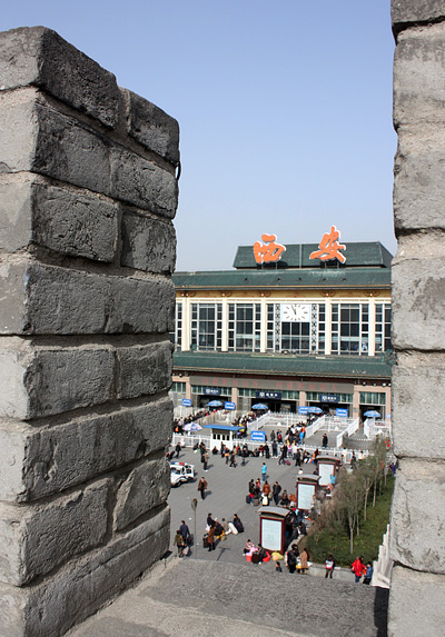 Ancient City Wall is the first landmark visitors will encounter in Xi'an, stretches round the old city. It's very special among China there’s a completed and occlusive wall in city center. When I rode bicycle on the wall with very warm sunshine in Winter, I felt that it was really an enjoyment, leisure and free. Cycling on City Wall is amazing way to overlook Xi'an. On the way I saw people doing exercise in river bank parks, the railway station and Muslim quarters with ancient style house, even the Guangren Lama Temple. Most buildings inside the circle of city wall are ancient style or very short, but the outside building are very high and modern. I thought that's like taking time boat.