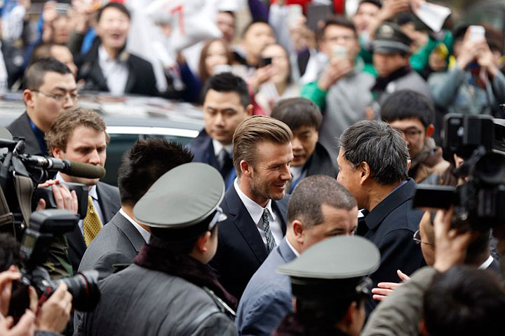 The former England captain, David Beckham arrived in Beijing, capital of China, on March 20 in his private aeroplane. This football superstar was fully loved by Chinese football fans and received a warm welcome and enthusiastic cheering during his short visit. In Beijing, Beckham began his five-day China tour, acting as a "global ambassador" for the Chinese Super League (CSL) - China's top-flight soccer league, and for the Youth Football Program in China.