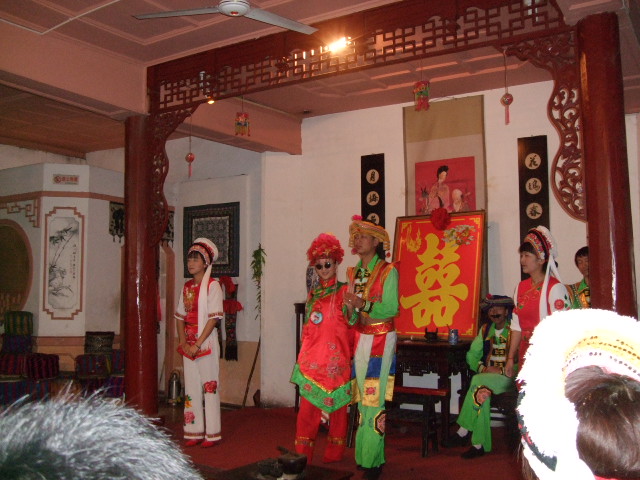 This show comes up when the host presented us the third tea, the bitter sweetness tea. Life is full of bitterness, but sweetness. This show is called Qiaxinniang( it means pinching the bride).