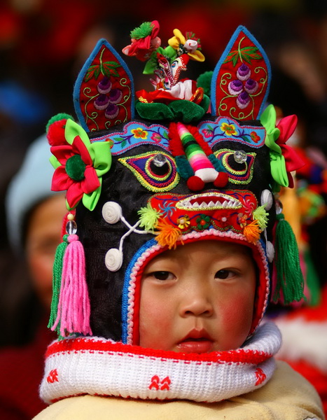 Tiger-head cap is for kids, both boys and girls! In Ancient China, a child dressed in tiger-head cap, with tiger-head shoes to ward off evil. Today, there are also tiger-face hat, dog-head hat, lion-head hat, little pig-head hat, etc.