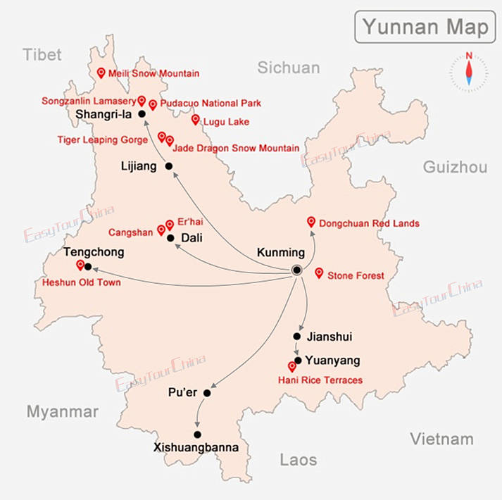 - Destinations: Kunming - Jianshui - Yuanyang - Dali - Lijiang - Shangri-La