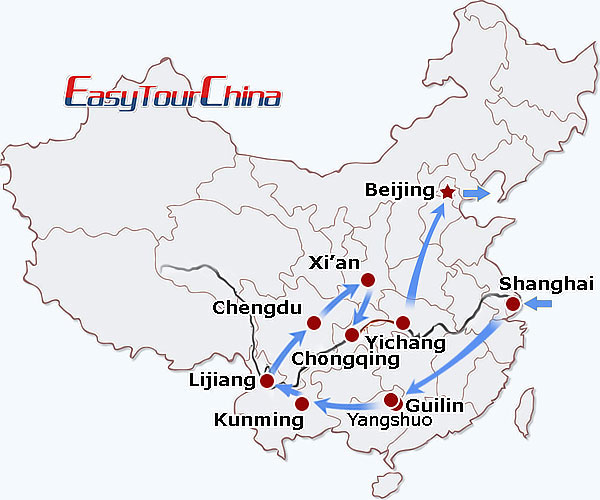 Destinations: Shanghai - Guilin - Yangshuo - Kunming - Lijiang - Chengdu - Xi'an - Chongqing - Yangtze River Cruise - Yichang - Beijing