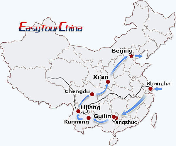 Destinations: Shanghai - Guilin - Yangshuo - Guilin - Kunming - Lijiang - Chengdu - Xi'an - Beijing