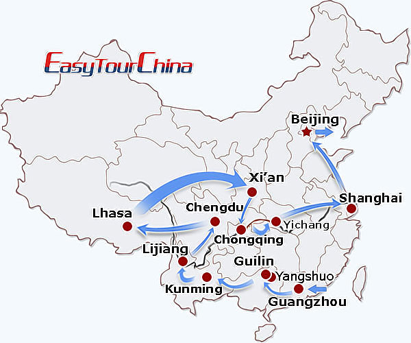 Destinations: Guangzhou - Guilin - Kunming - Lijiang - Chengdu - Lhasa - Xi'an - Chongqing - Yichang - Shanghai - Beijing