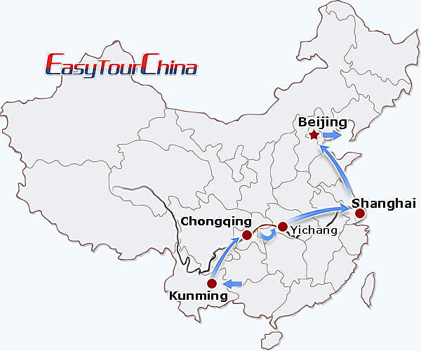 Destinations: Kunming - Chongqing - Yangtze Cruise - Yichang - Shanghai - Beijing