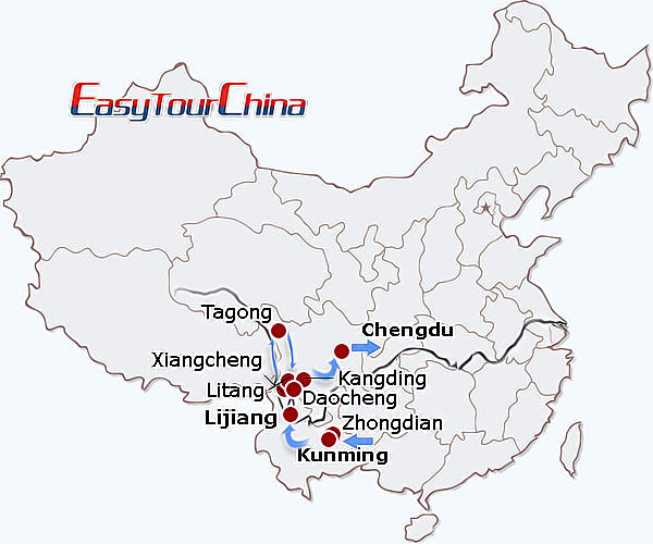 Destinations: Kunming - Lijiang - Zhongdian - Xi'angcheng - Daocheng - Litang - kangding - Chengdu