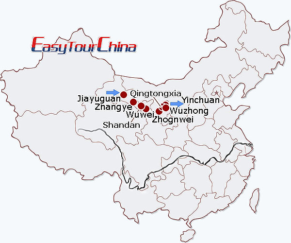 Destinations: Jiayuguan - Zhangye - Shandan - Wuwei - Zhongwei - Qingtongxia - Wuzhong - Yinchuan