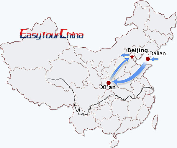 A specially-arranged China tours takes you to Dalian, Xian then ends in Beijing – After visiting the charming seashore city Dalian, take a flight to ancient capital Xi’an for the miraculous Terra Cotta Warriors and Horses then head to Beijing – another ancient city with numerous imperial attractions. And you will visit other highlights such as Muslim Quarter, Small Wild Goose Pagoda, Xian Museum, ancient city wall, Temple of Heaven, Tiananmen Square, Forbidden City...