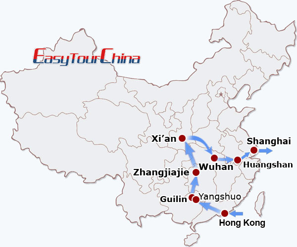 Destinations: Hong Kong - Guilin - Zhangjiajie - Xian - Wuhan - Huangshan - Shanghai